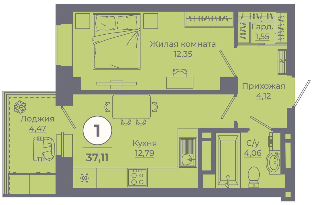 1-комнатная — 36,8 м² 19/24 эт. в Сокольники