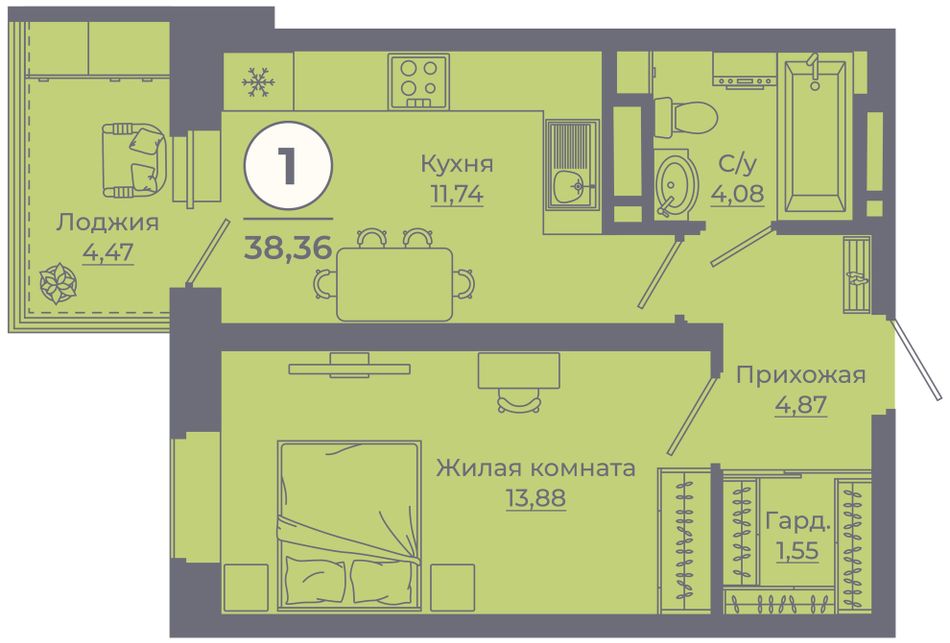 1-комнатная — 38,02 м² 21/24 эт. в Сокольники