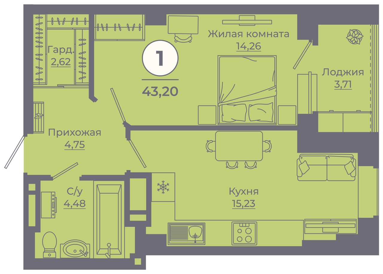 1-комнатная — 42,78 м² 24/24 эт. в Сокольники