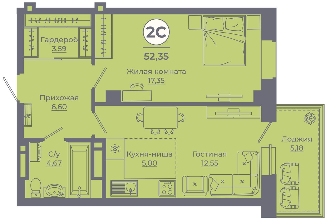 2-комнатная — 52,05 м² 24/24 эт. в Сокольники