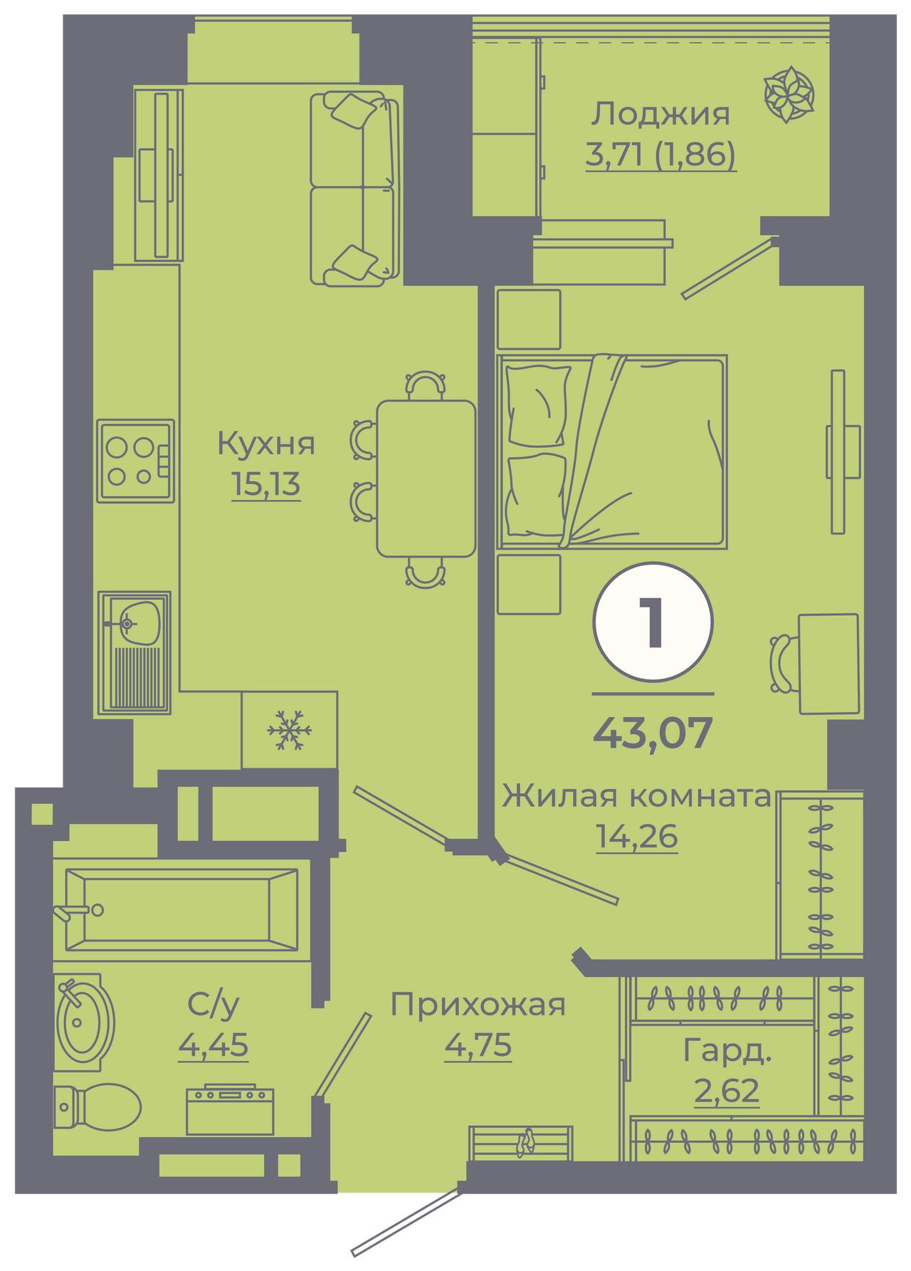 1-комнатная — 42,95 м² 17/24 эт. в Сокольники