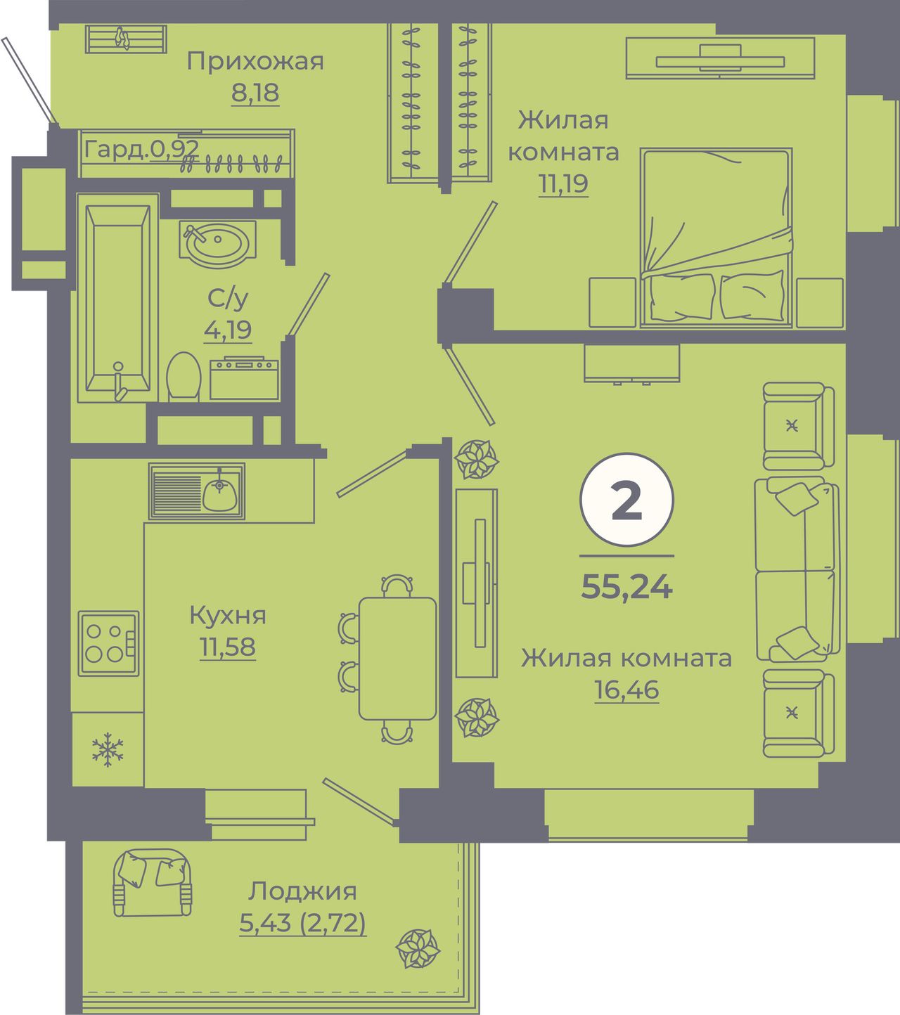 2-комнатная — 55,04 м² 22/24 эт. в Сокольники
