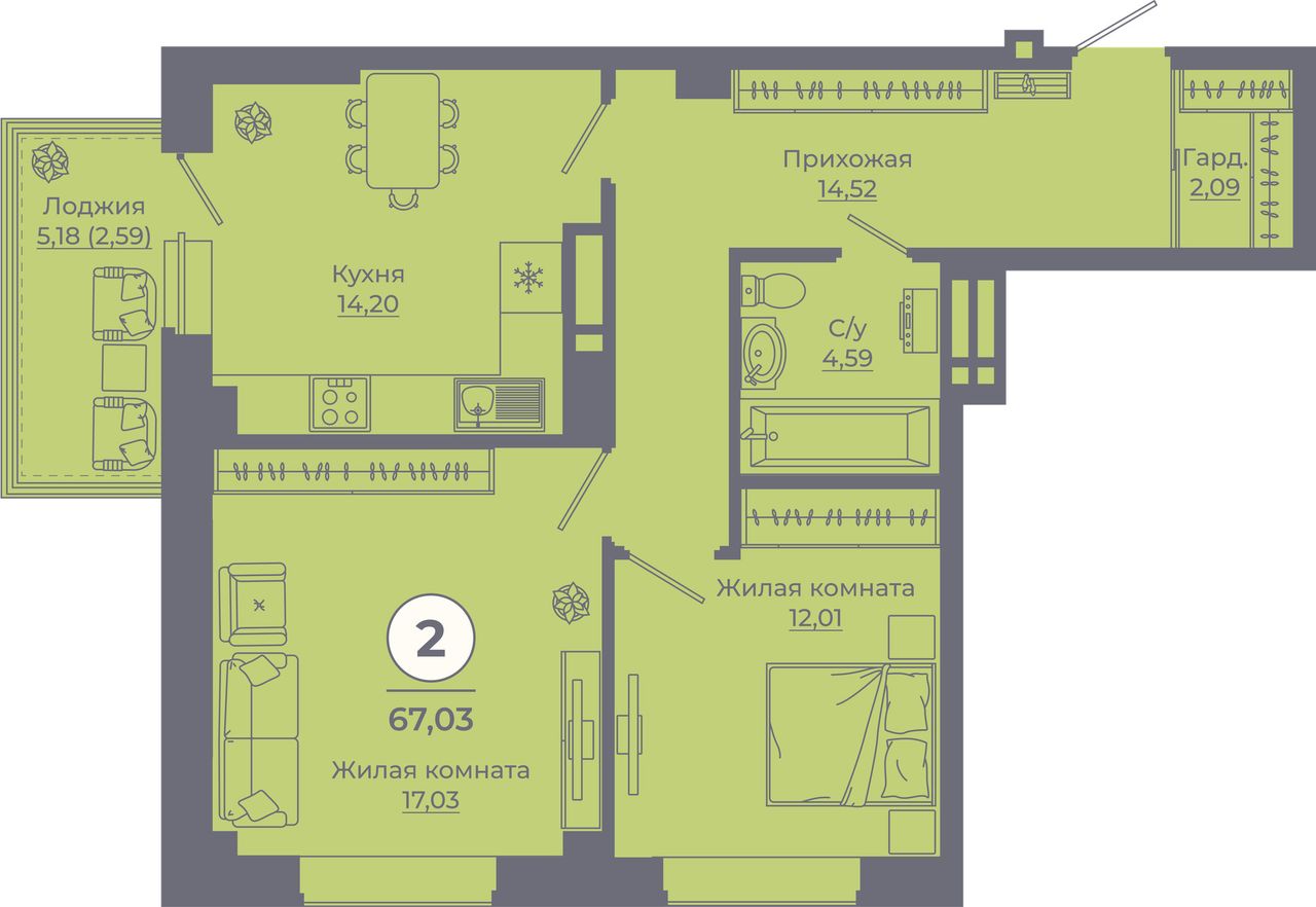 2-комнатная — 66,75 м² 24/24 эт. в Сокольники