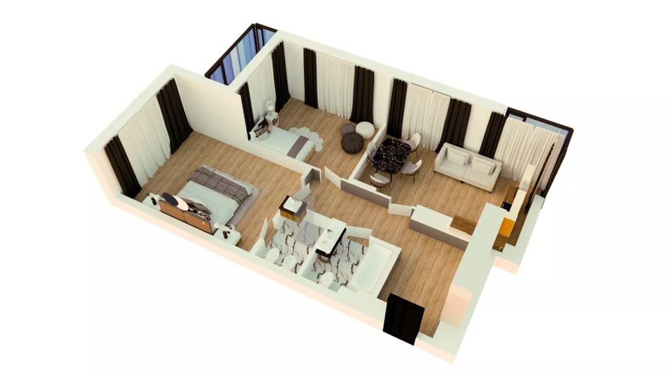 - Включить с стоимость квартиры дизайнерский ремонт и меблировку от магазина Hoff