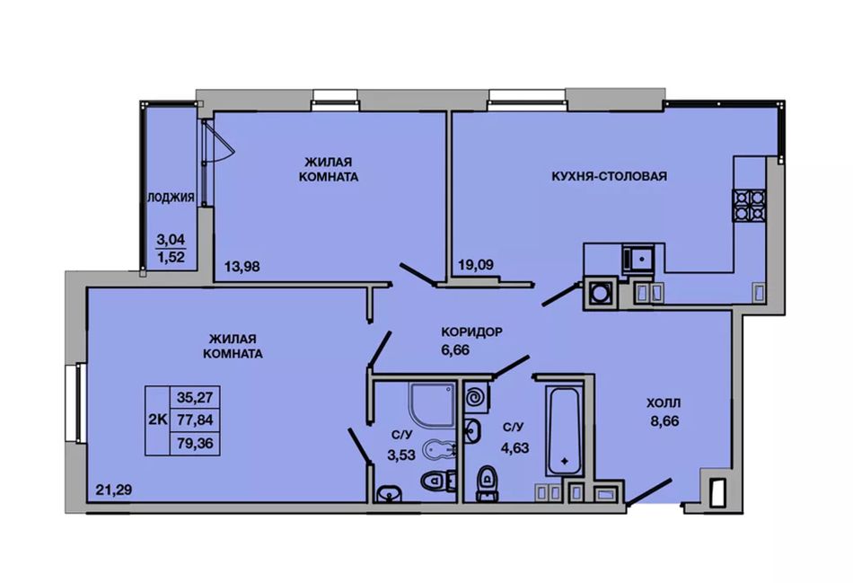 2-комнатная — 79,36 м² 6/8 эт. в Пальмира 2.0