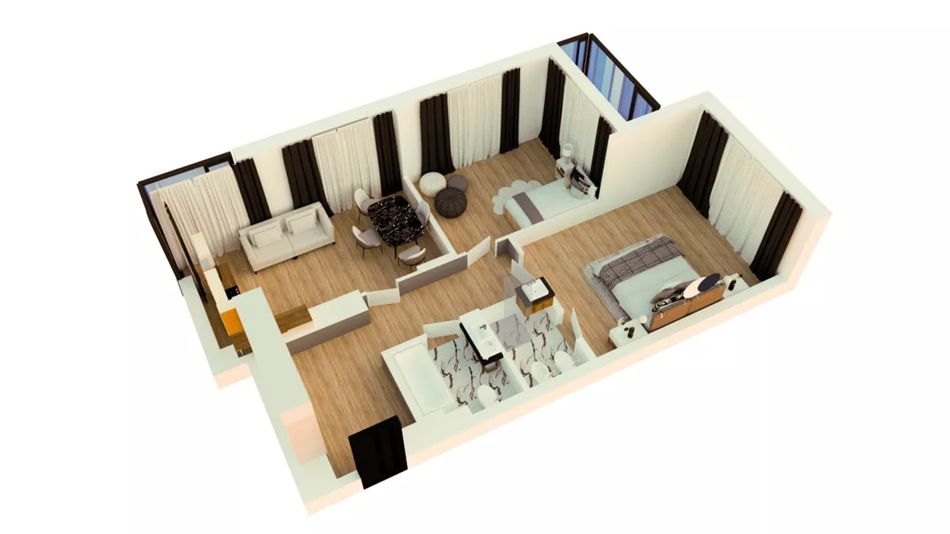 - Включить с стоимость квартиры дизайнерский ремонт и меблировку от магазина Hoff