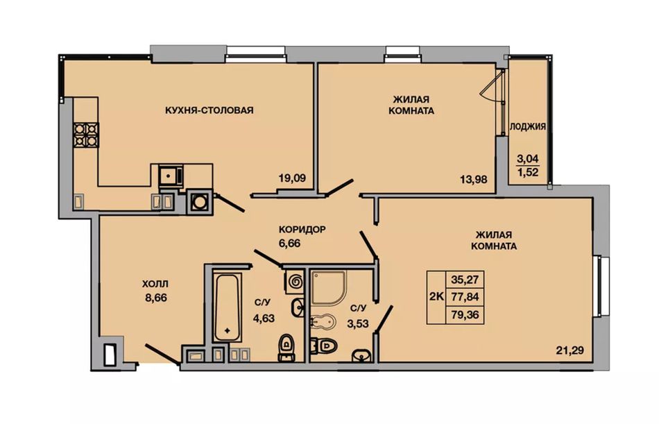 2-комнатная — 79,36 м² 4/8 эт. в Пальмира 2.0