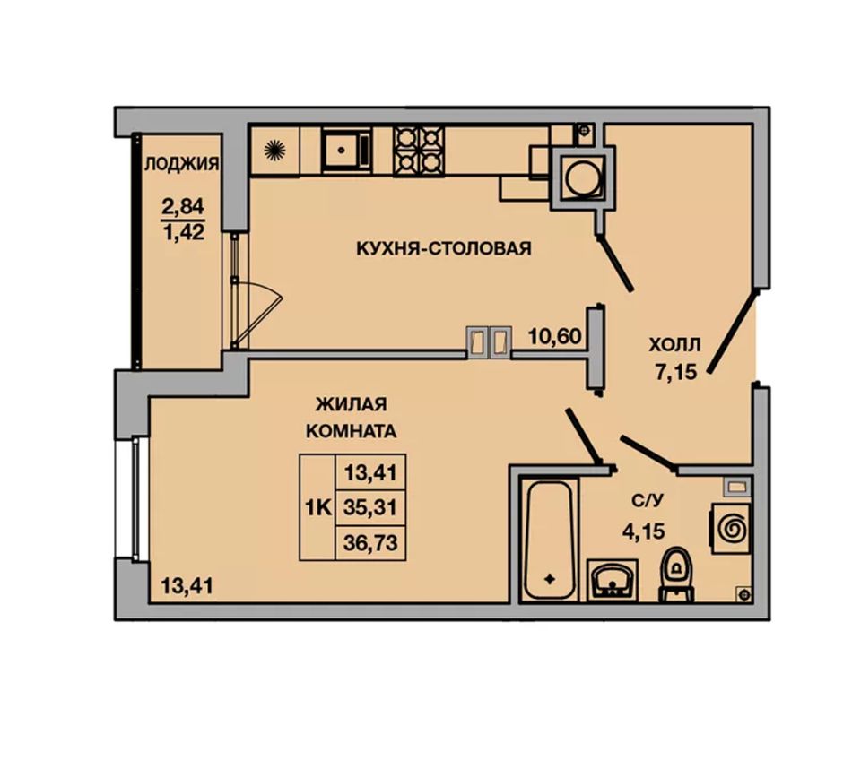 Общая площадь36,73 м²