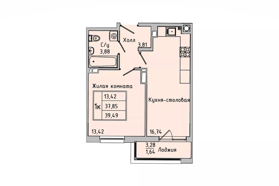1-комнатная — 37,8 м² 6/7 эт. в Пальмира 2.0