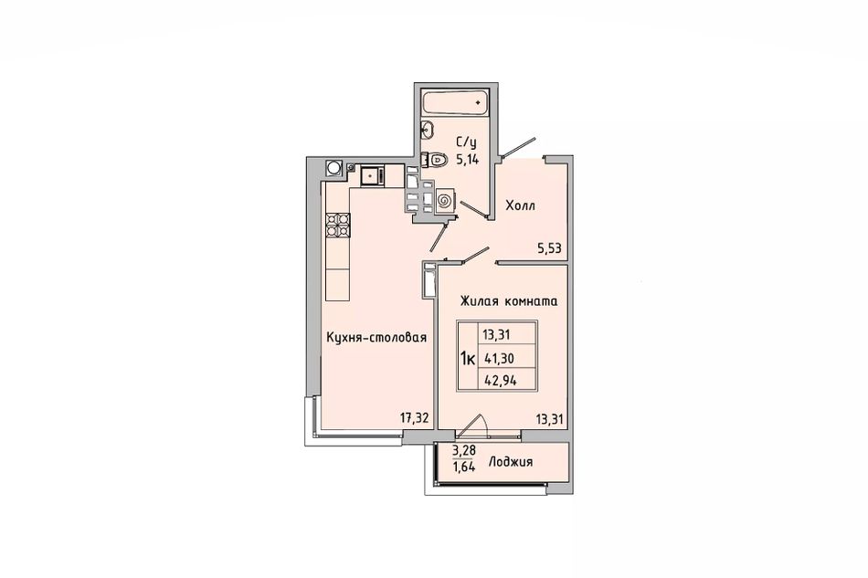 Общая площадь41,3 м²