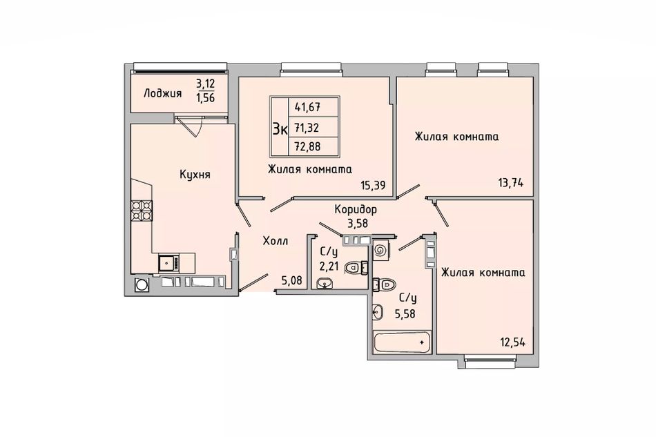 Общая площадь71,3 м²