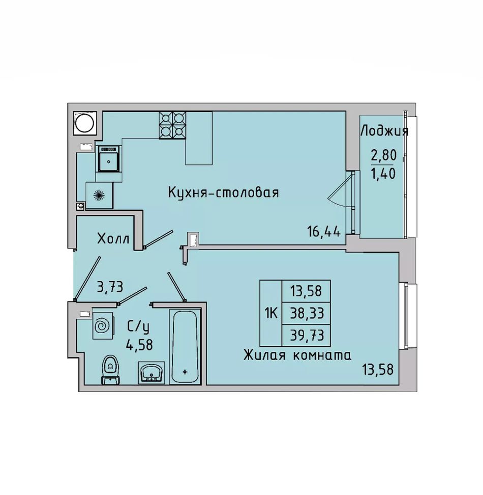 1-комнатная — 39,73 м² 1/10 эт. в Пальмира 2.0
