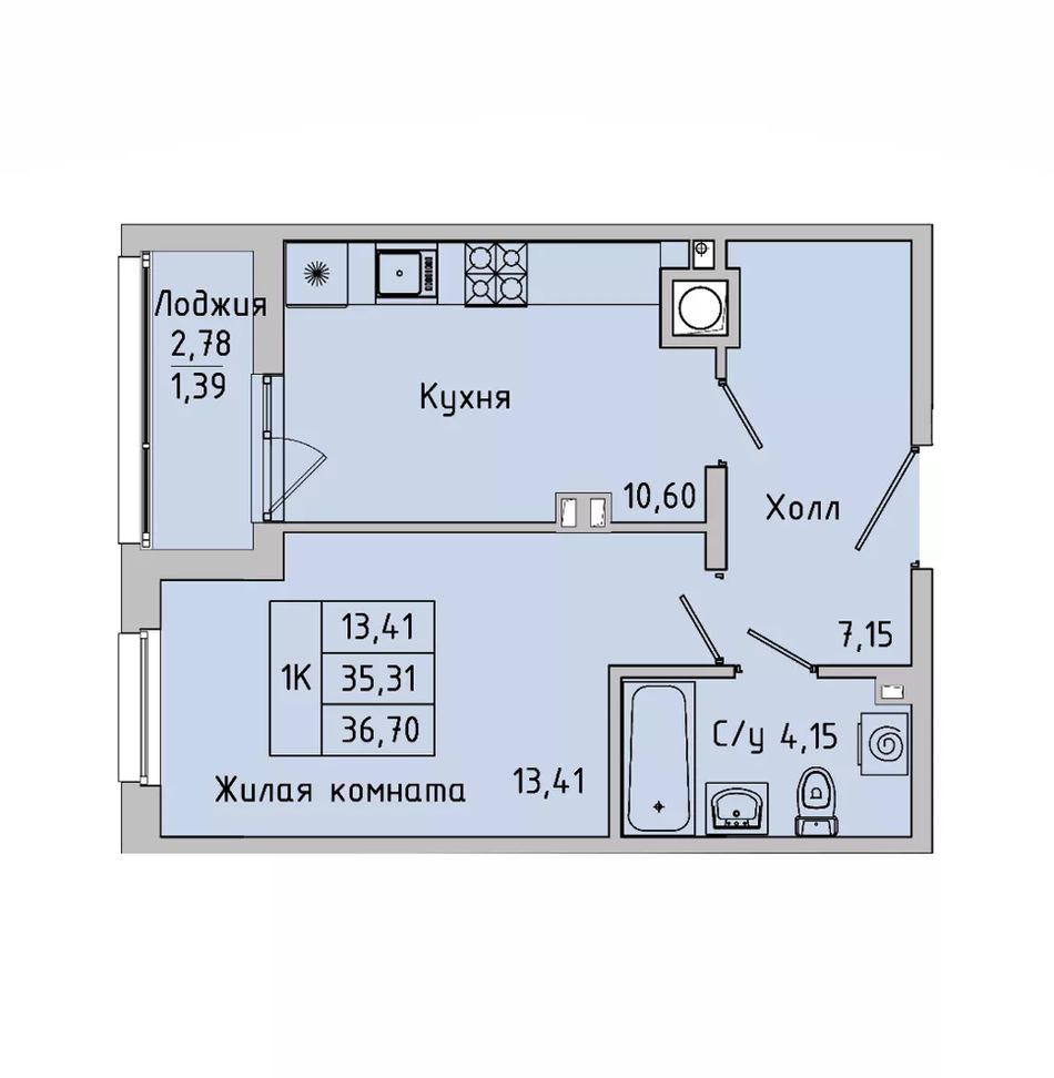 Общая площадь36,7 м²
