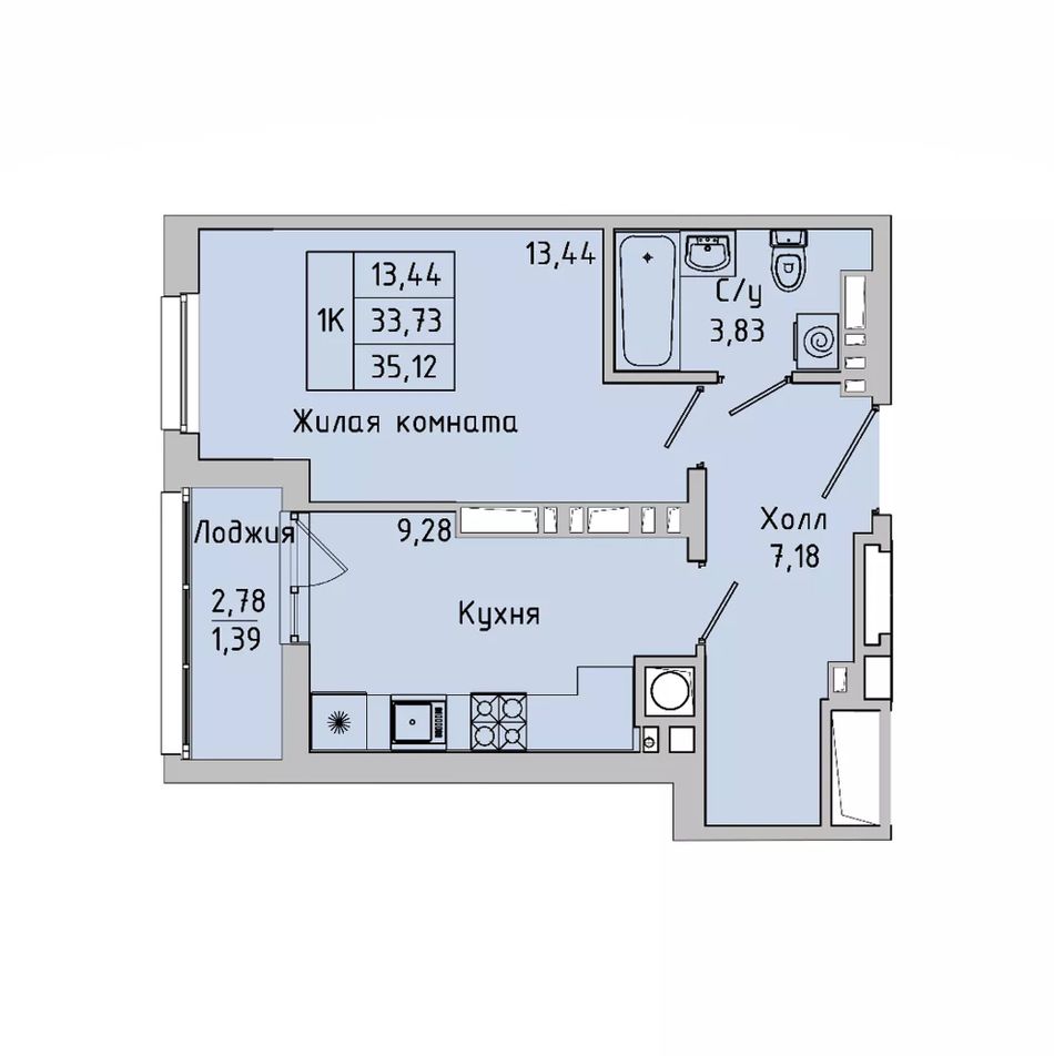 Общая площадь33,8 м²