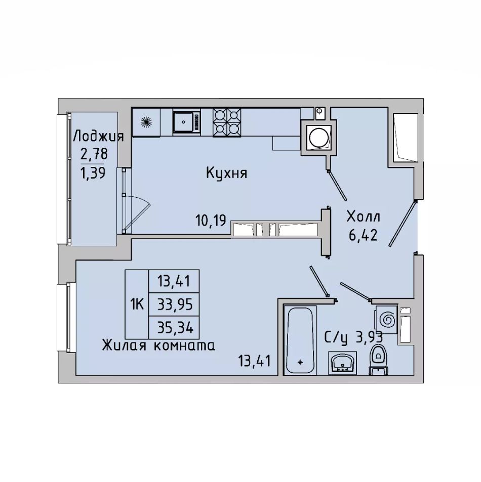 Общая площадь35,34 м²