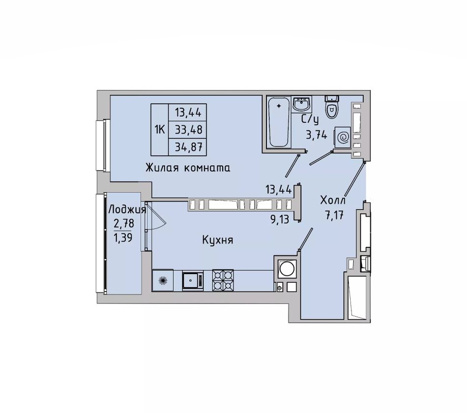 Общая площадь33,5 м²