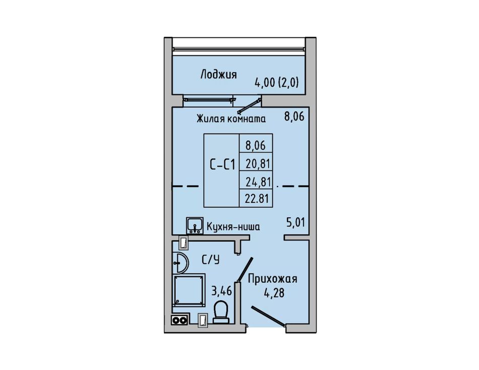 Студия — 22,81 м² 1/23 эт. в Лýна