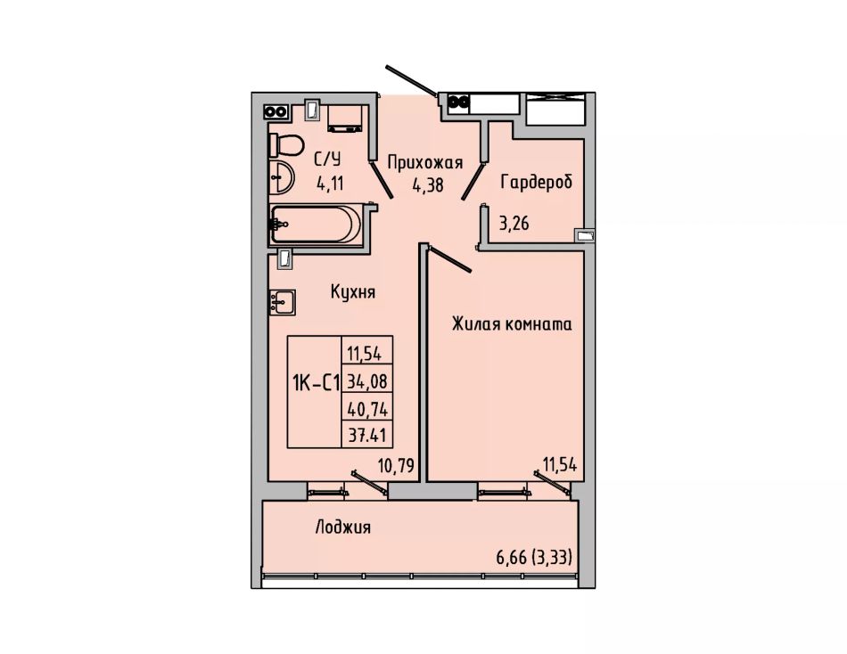 Общая площадь37,41 м²