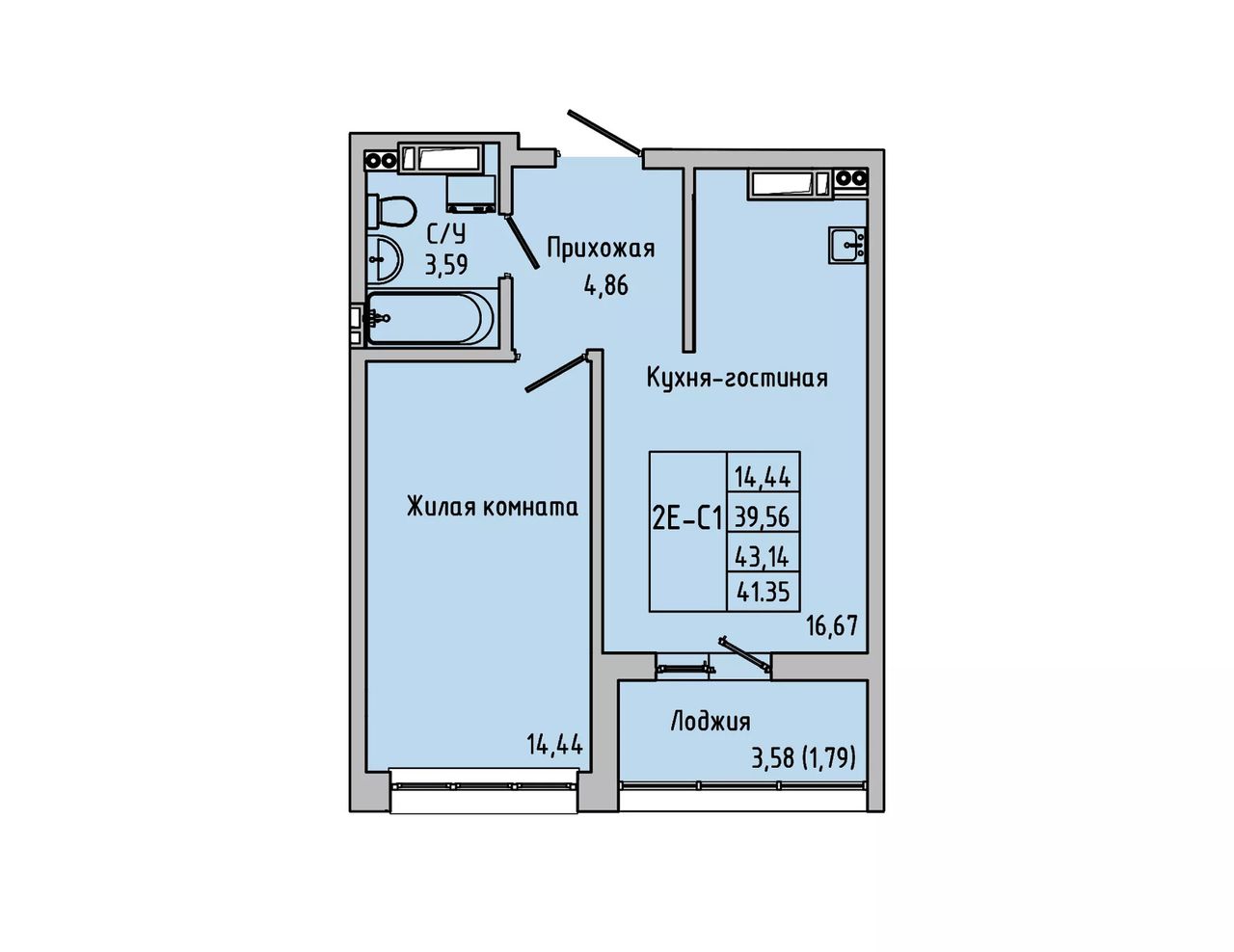 Общая площадь41,35 м²