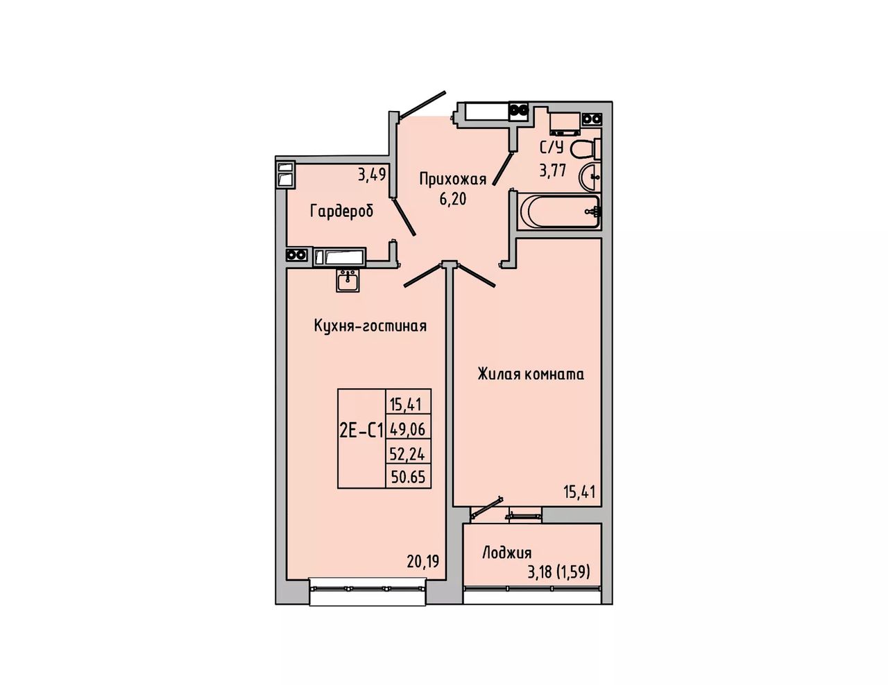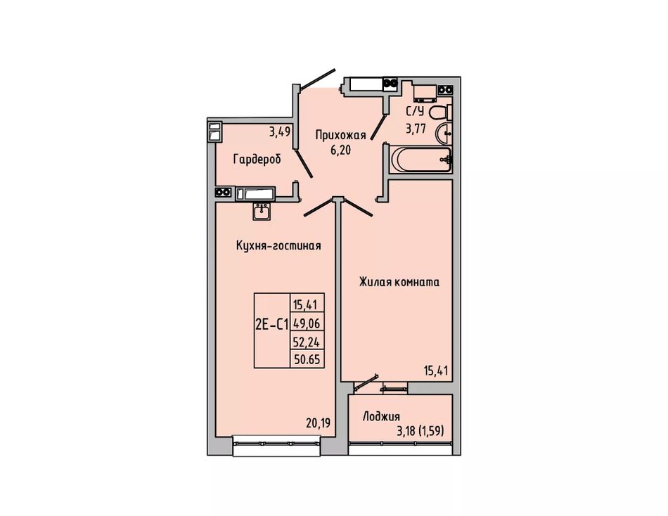 Общая площадь50,65 м²