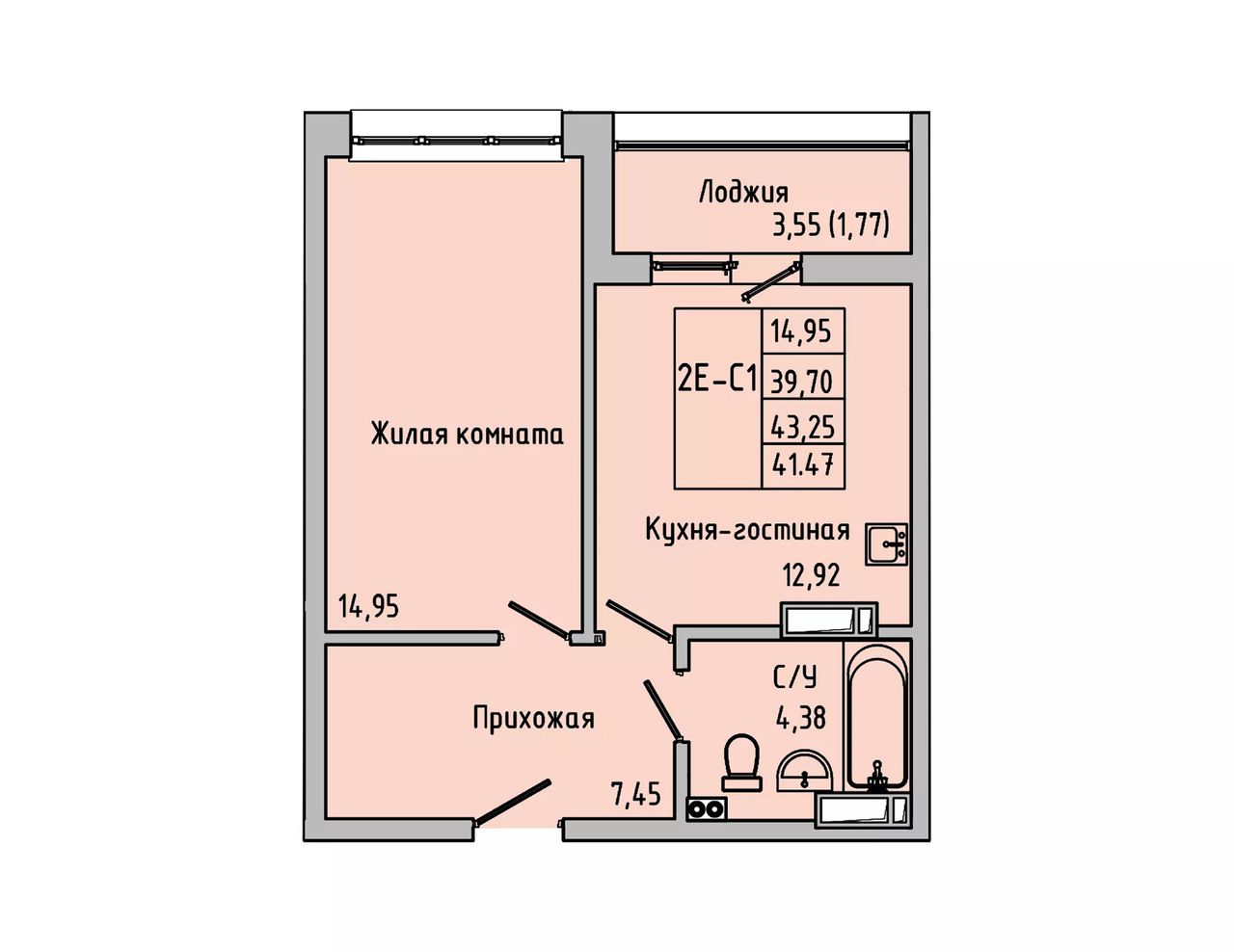 Общая площадь41,47 м²