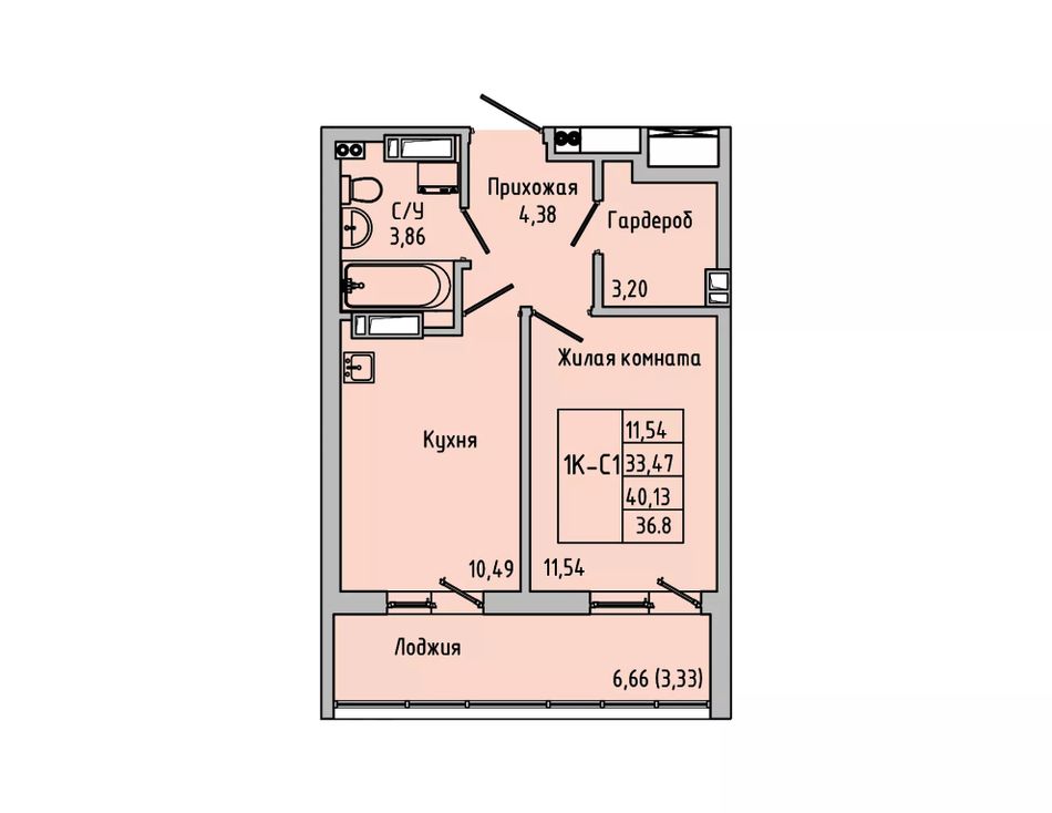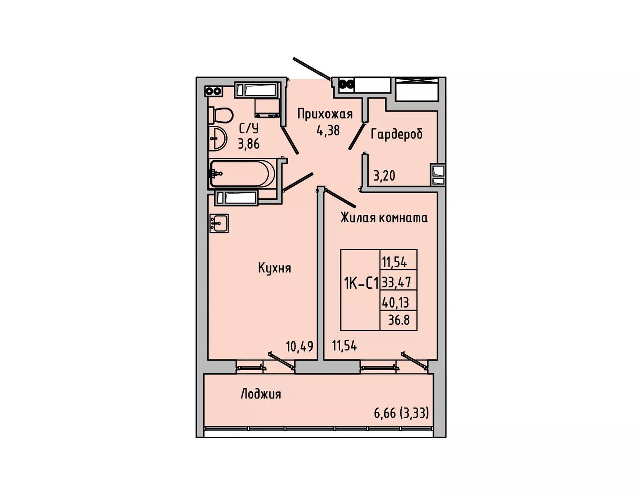 1-комнатная — 36,8 м² 6/23 эт. в Лýна