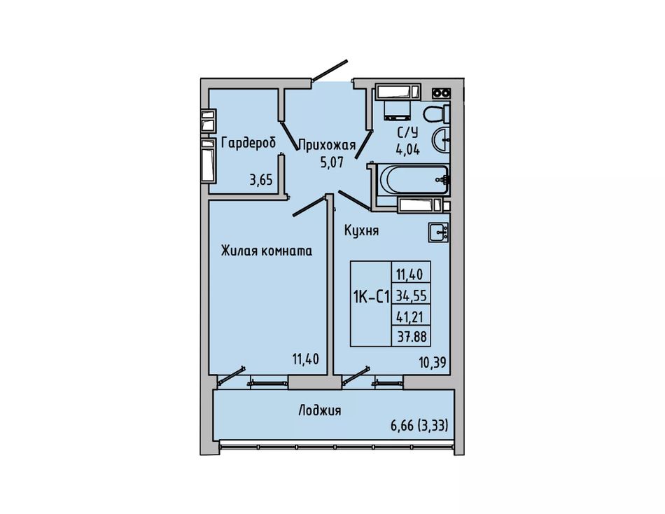 Общая площадь37,88 м²