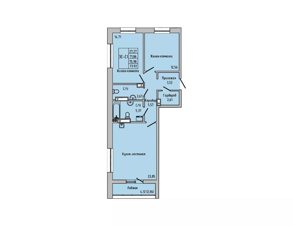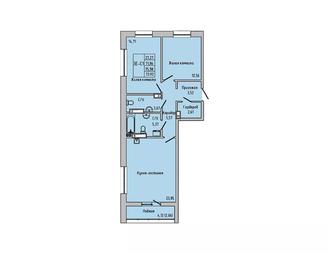 3-комнатная — 73,92 м² 11/23 эт. в Лýна