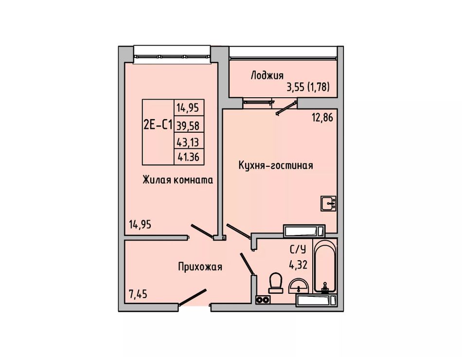 Общая площадь41,36 м²