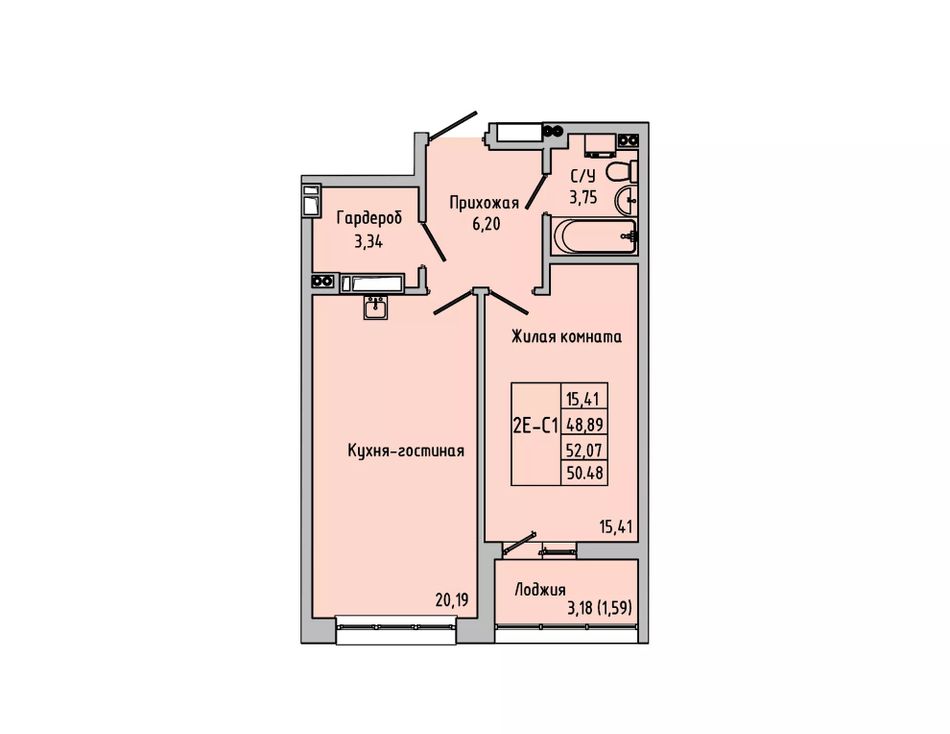 2-комнатная — 50,48 м² 13/23 эт. в Лýна