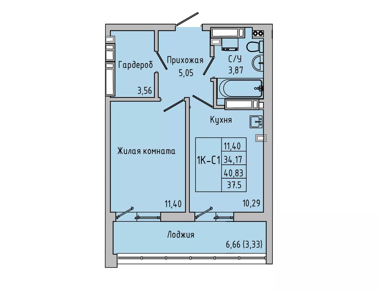 Общая площадь37,5 м²