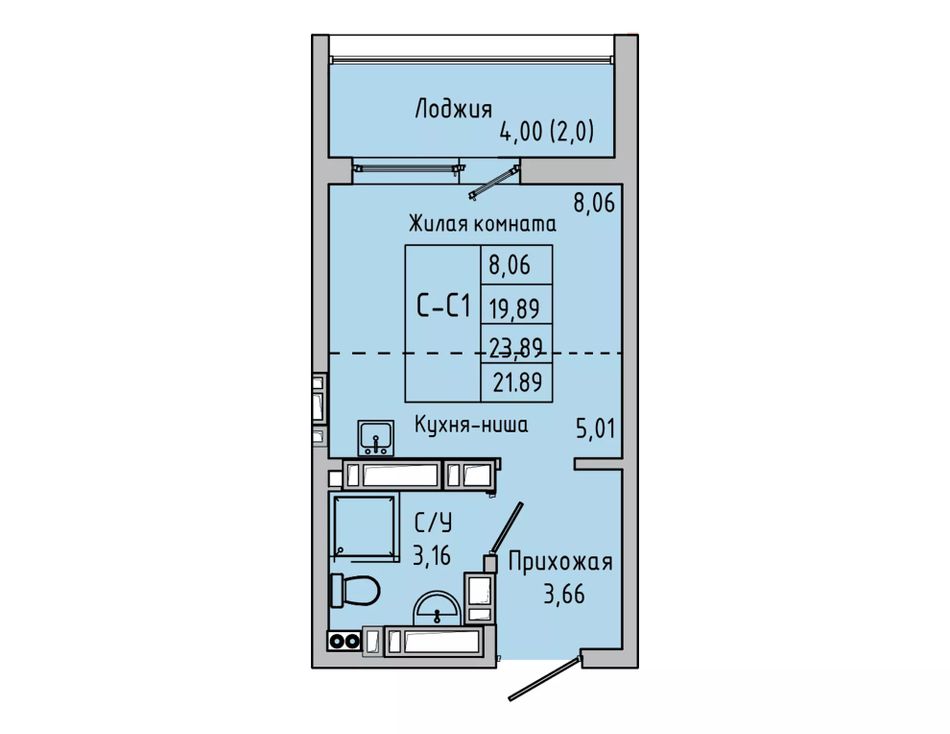 Студия — 21,89 м² 15/23 эт. в Лýна