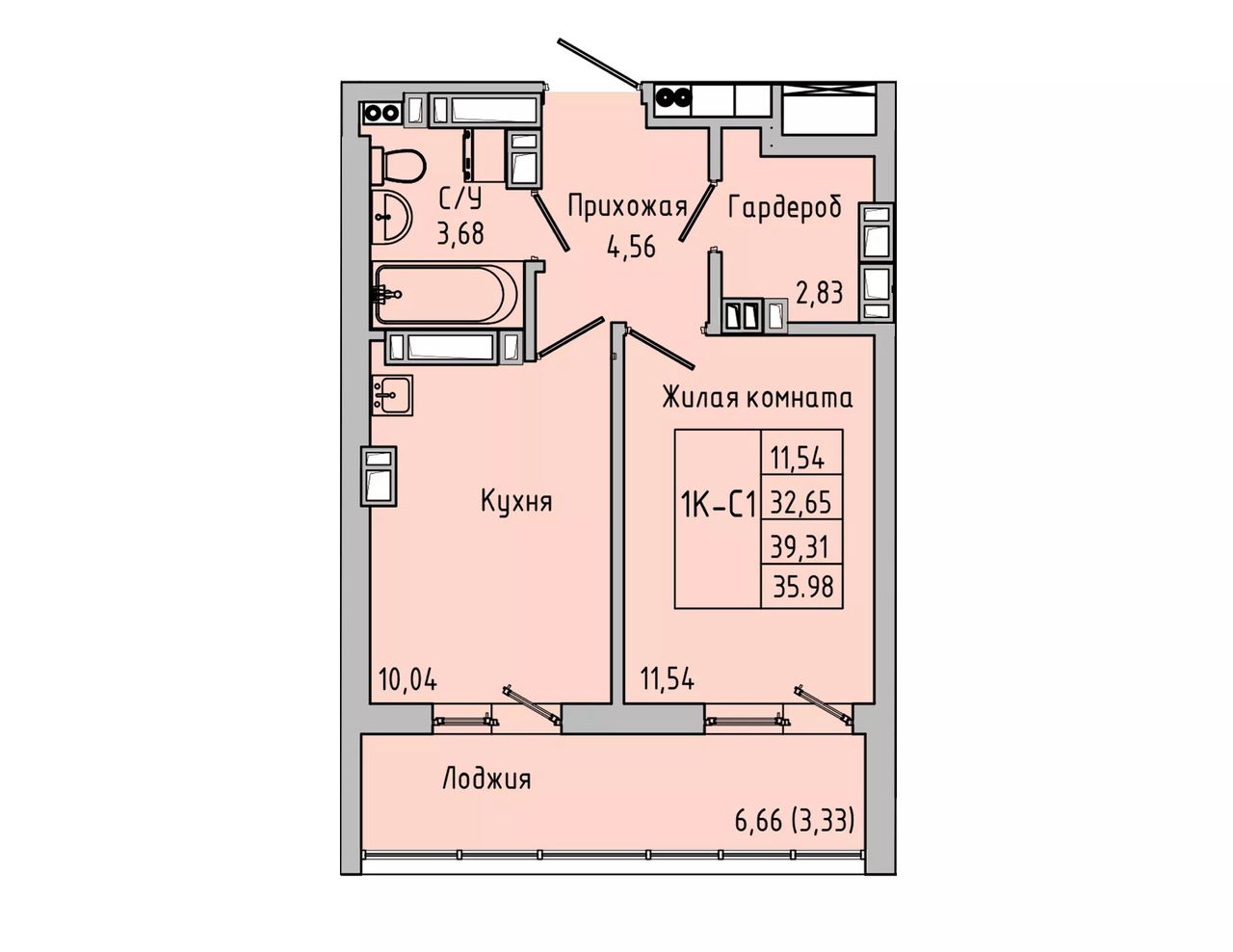 Общая площадь35,98 м²