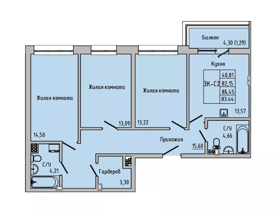 Общая площадь83,44 м²