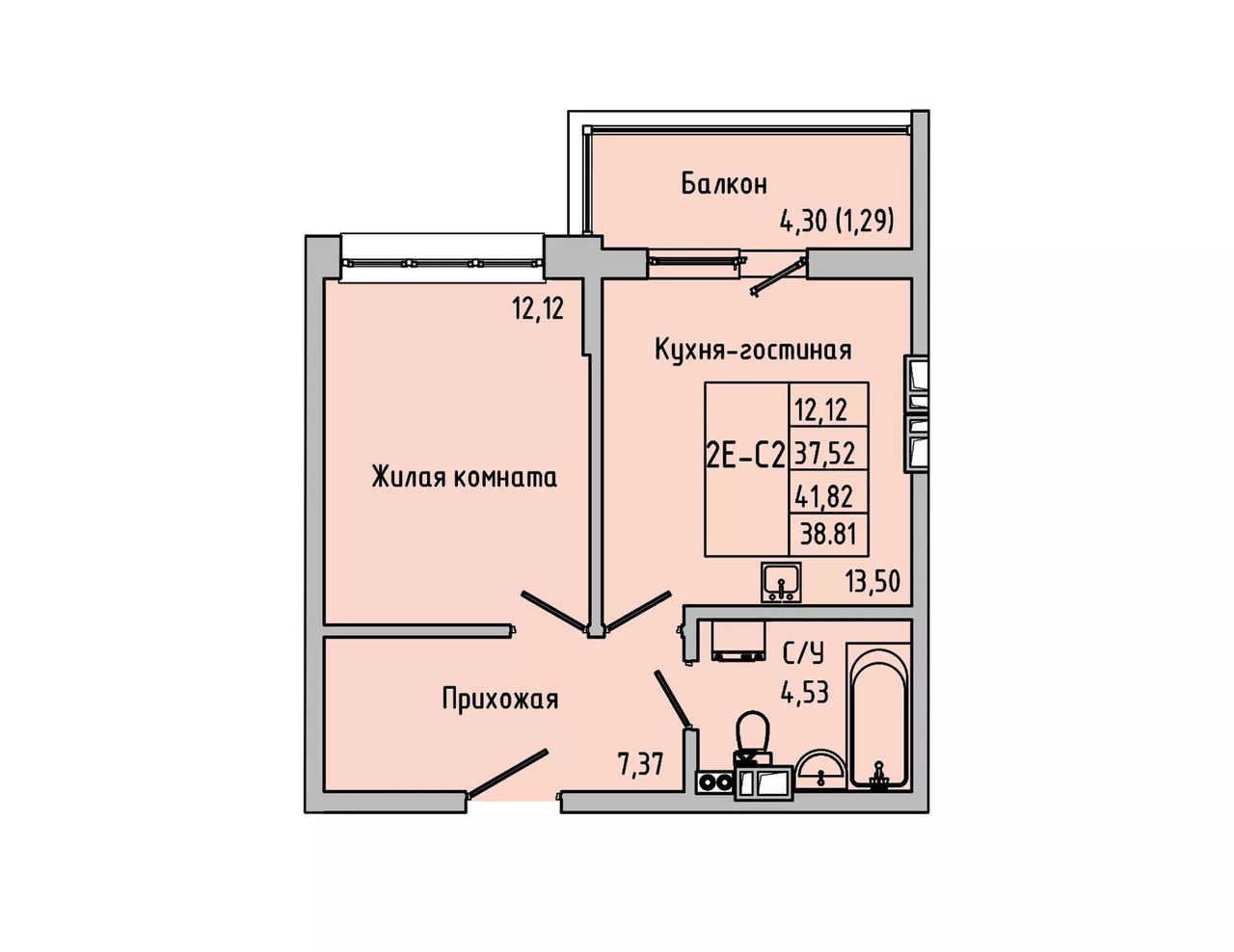 Общая площадь38,81 м²