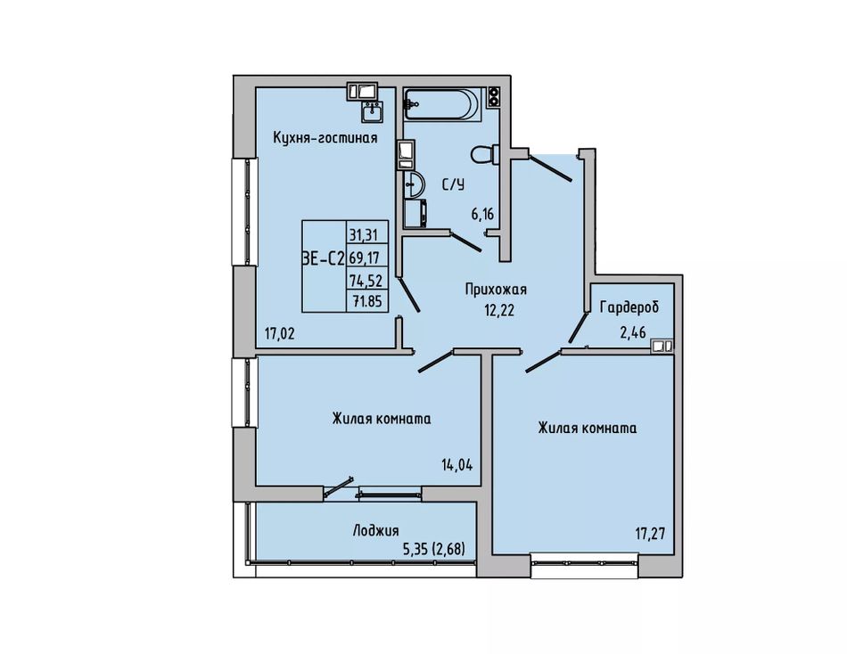Общая площадь71,85 м²