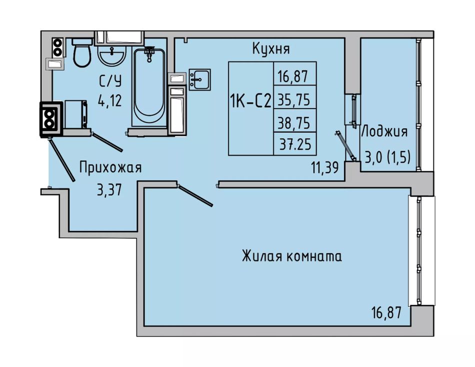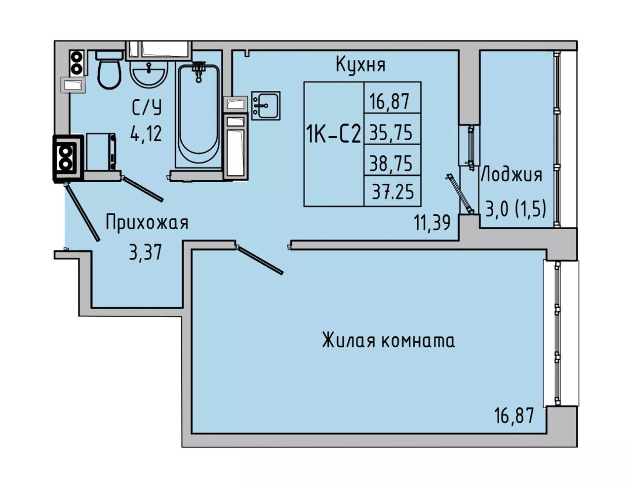 1-комнатная — 37,25 м² 14/23 эт. в Лýна