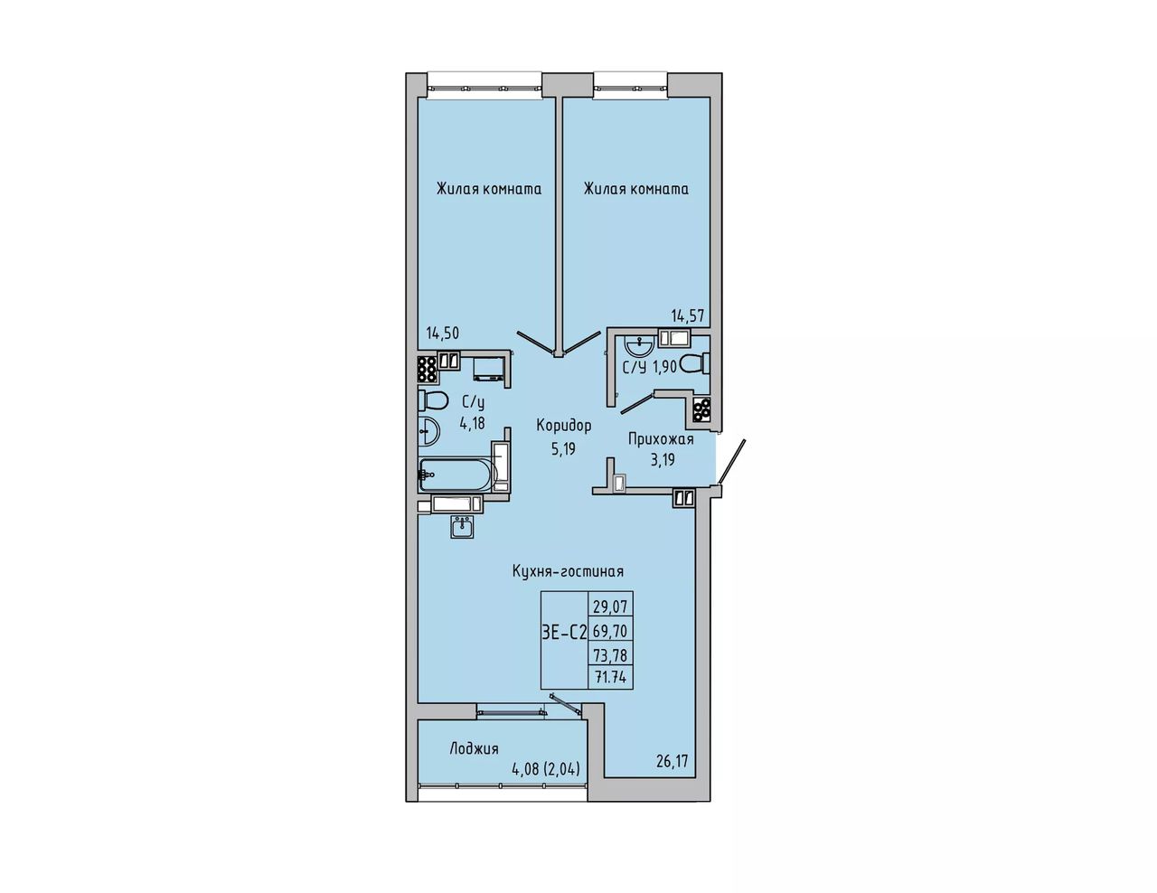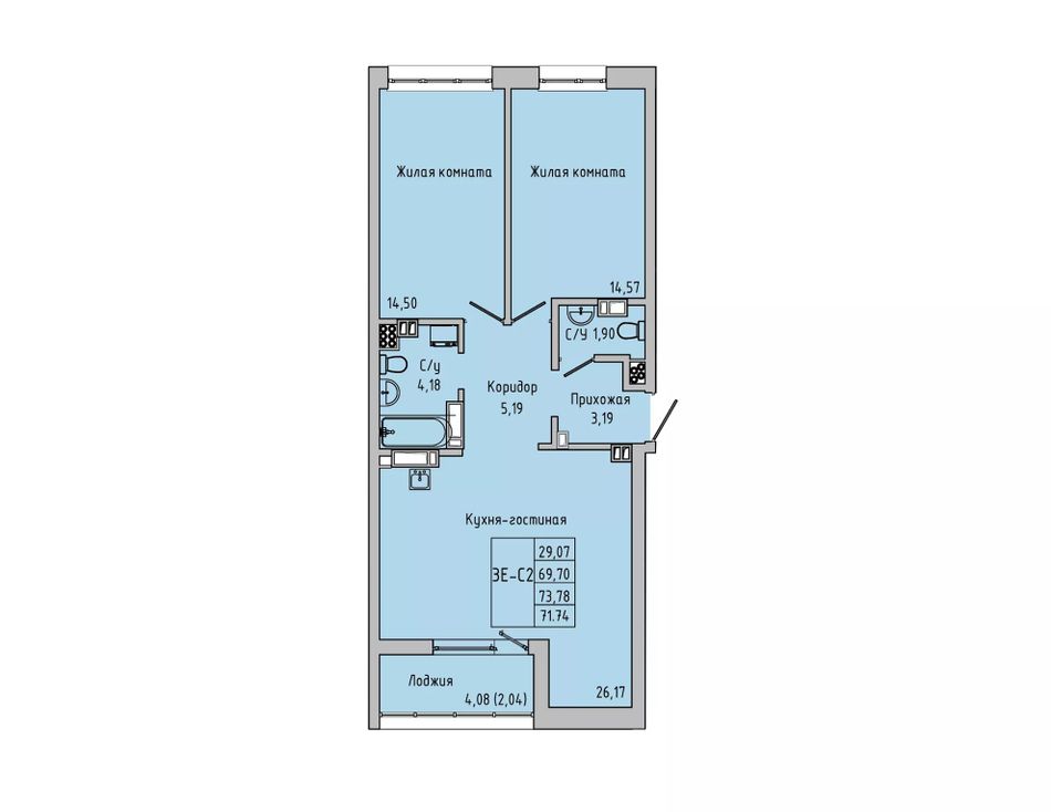 Общая площадь71,74 м²