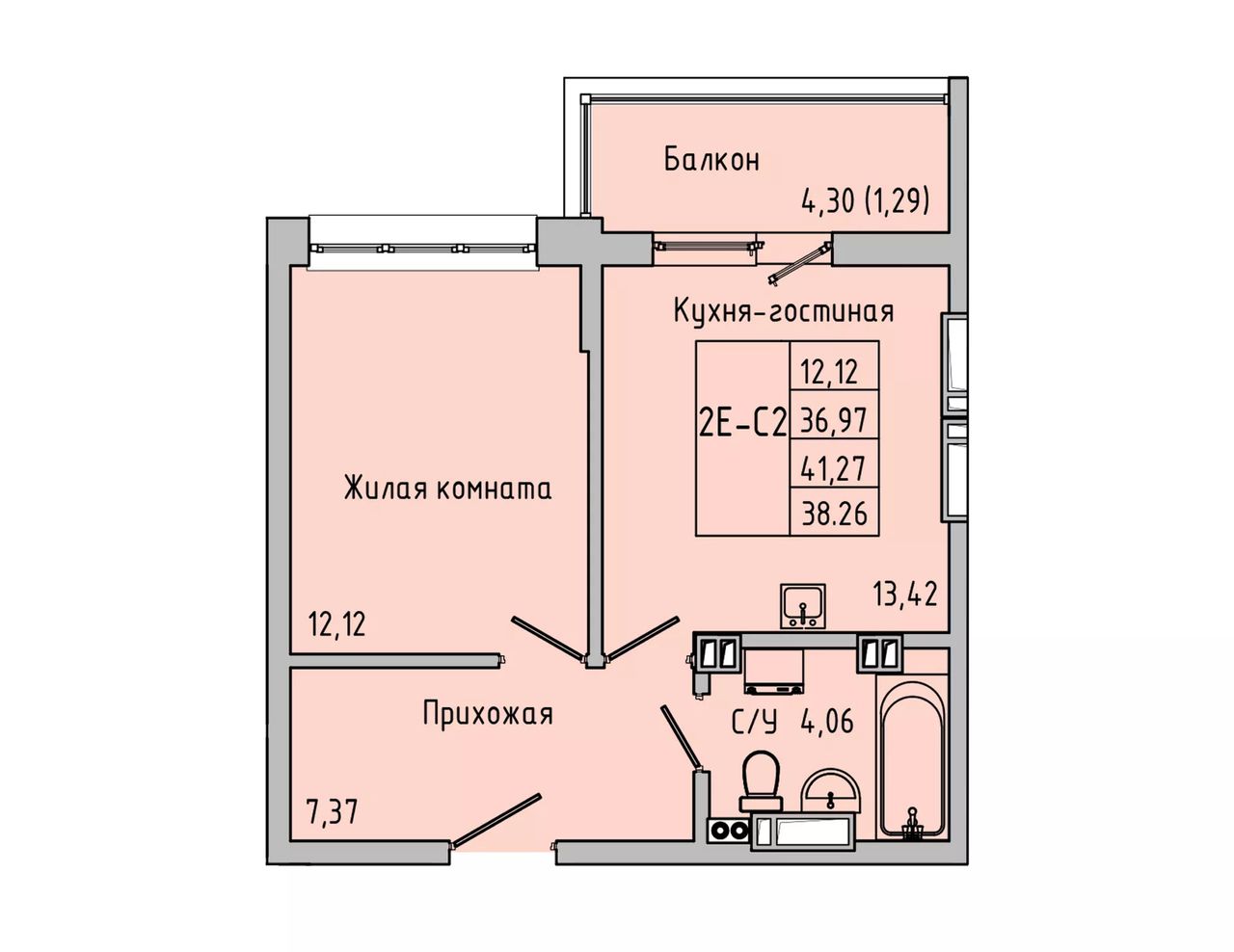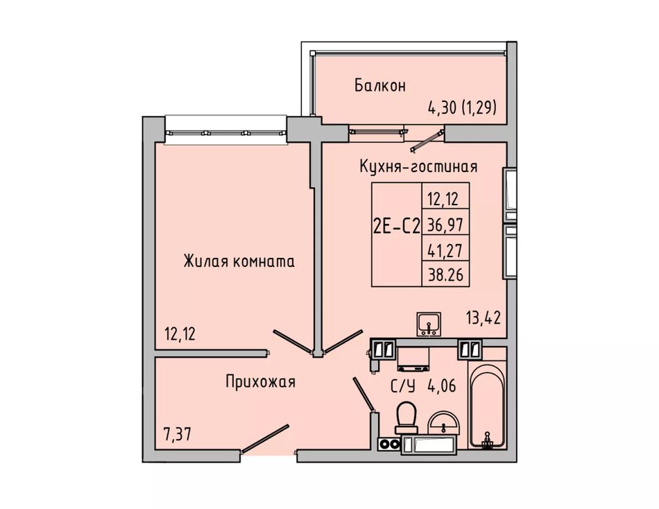 Общая площадь38,26 м²