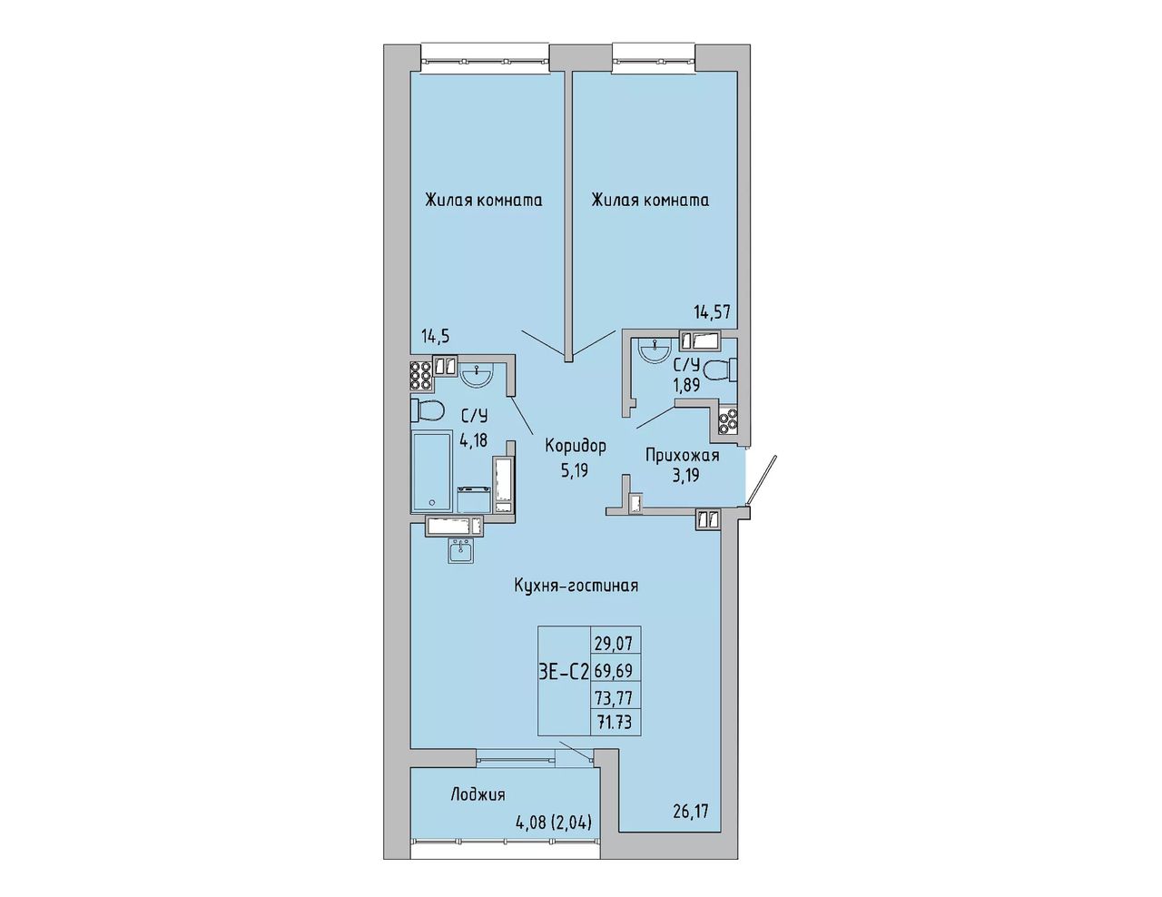 Общая площадь71,73 м²