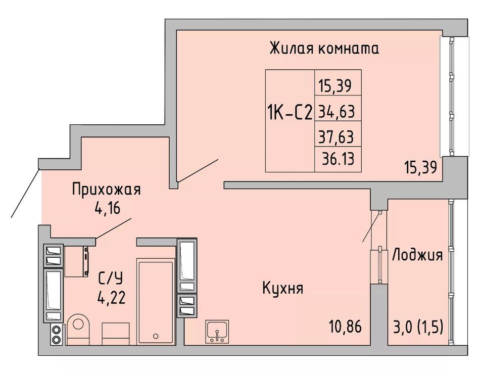 Жилая площадь15,39 м²