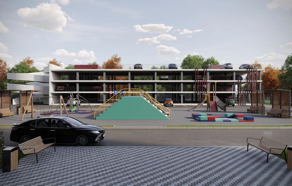 Трехуровневая наземная автостоянка с эксплуатируемой кровлей