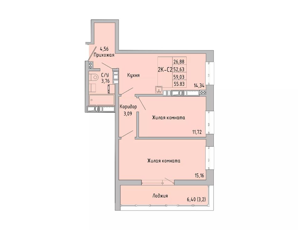 Общая площадь55,83 м²