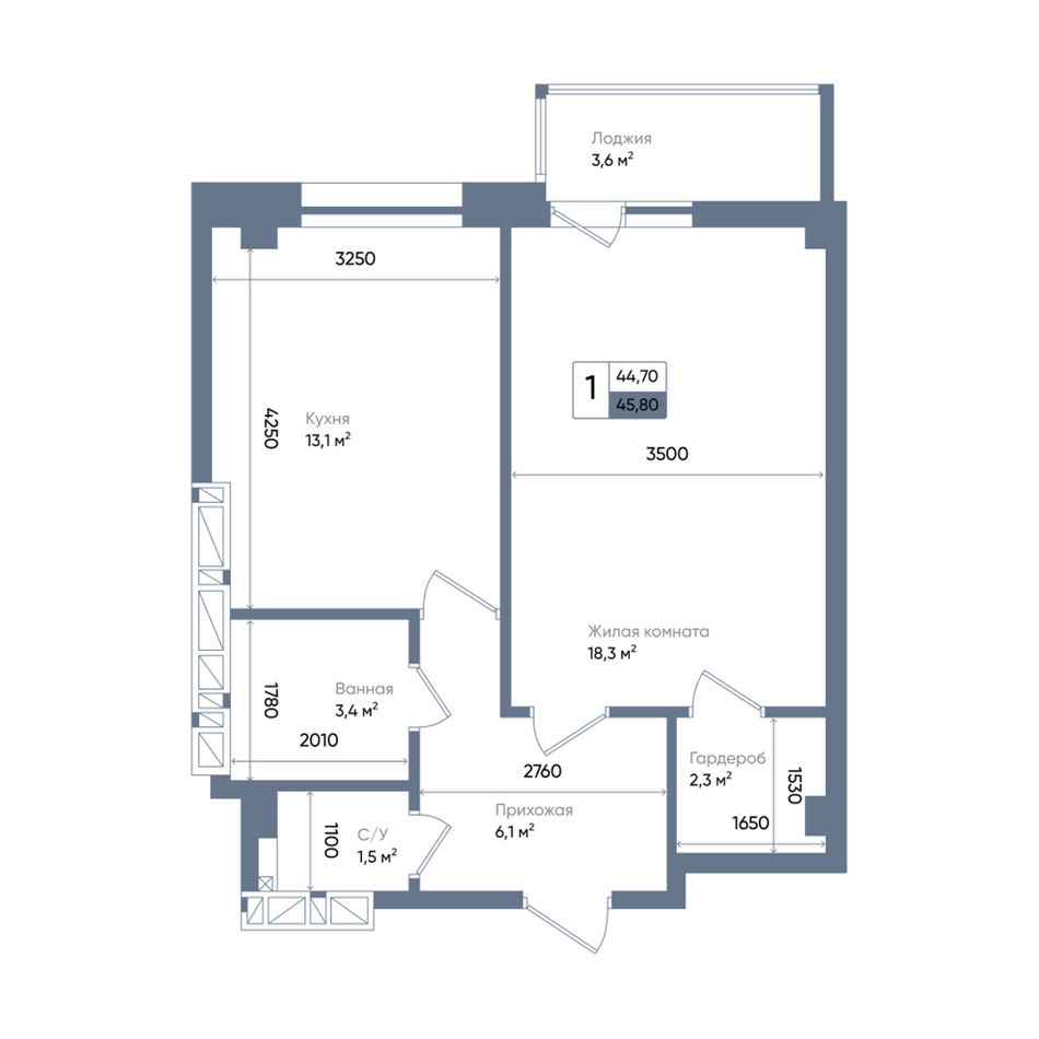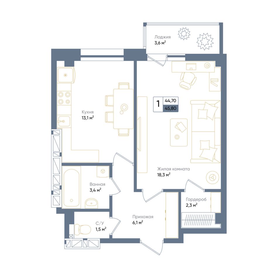1-комнатная — 47,1 м² 8/13 эт. в Times (Таймс)