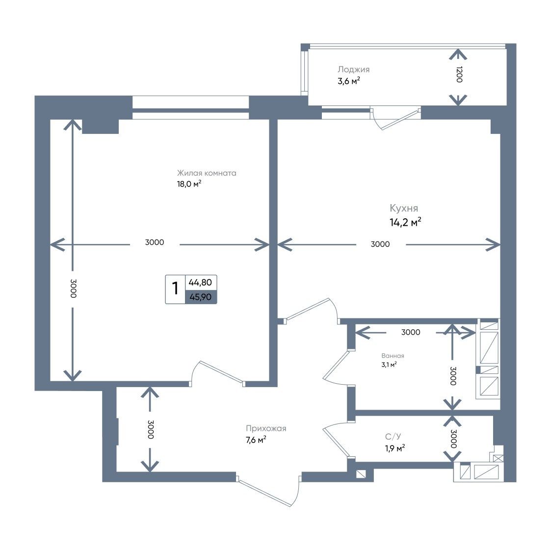 Общая площадь45,9 м²