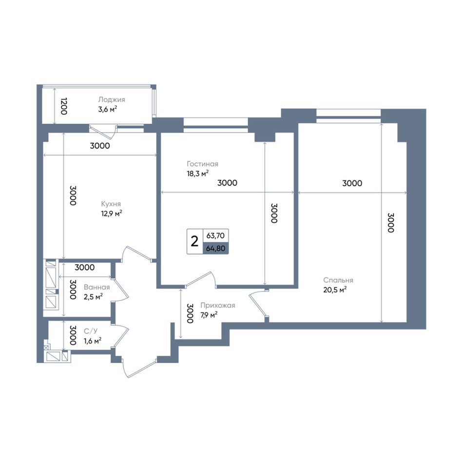 2-комнатная — 66,8 м² 9/13 эт. в Times (Таймс)