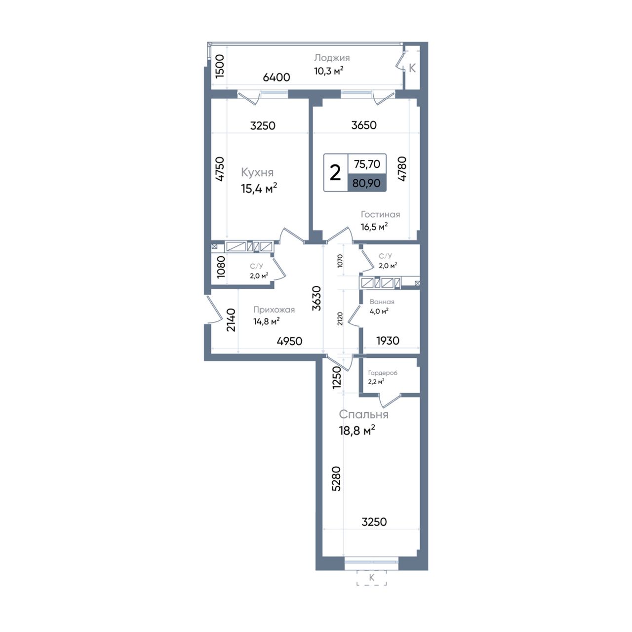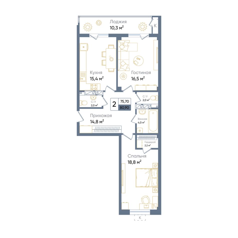 2-комнатная — 82,3 м² 15/19 эт. в Times (Таймс)