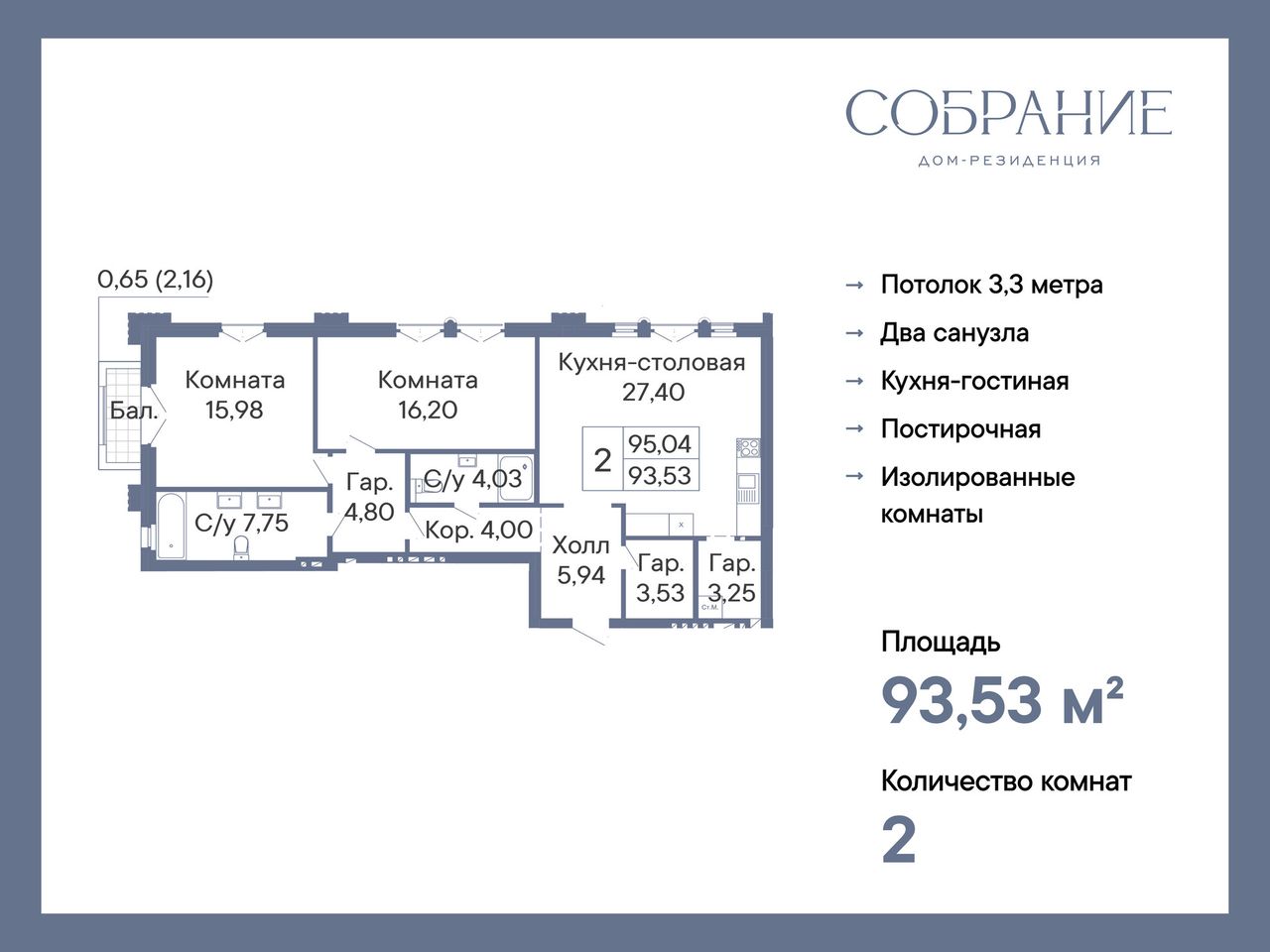 2-комнатная — 93,53 м² 4/7 эт. в Дом-Резиденция Собрание