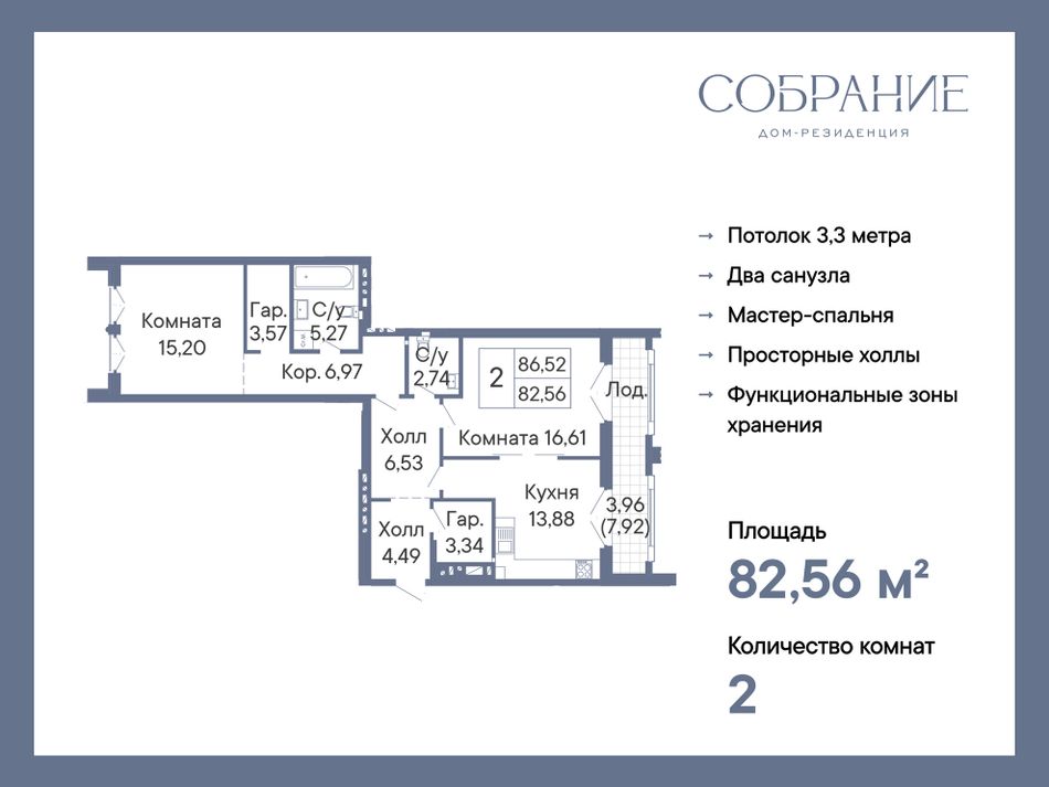 2-комнатная — 82,56 м² 5/7 эт. в Дом-Резиденция Собрание