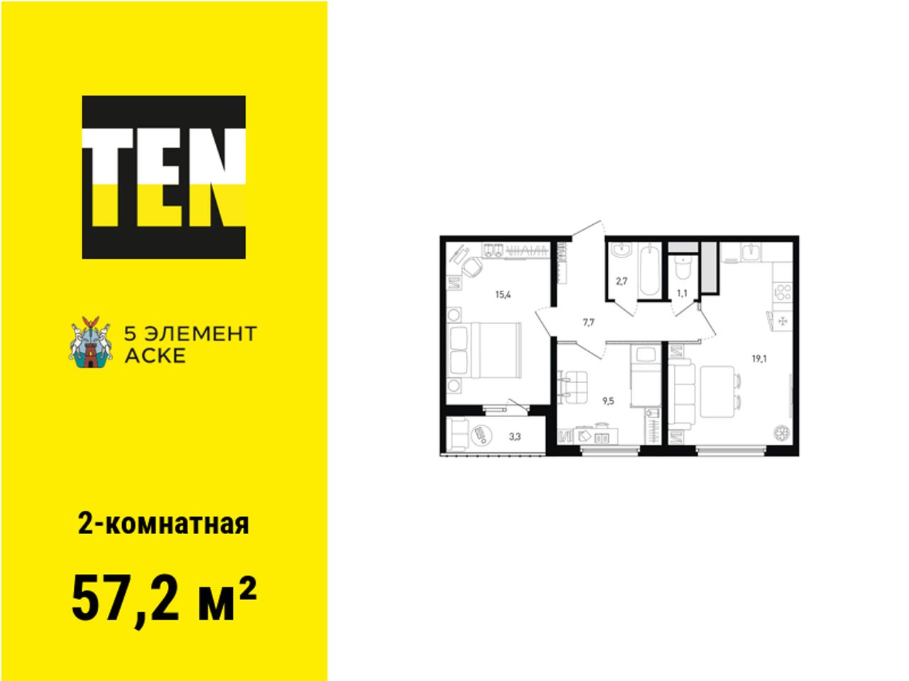 2-комнатная — 57,2 м² 13/16 эт. в 5 элемент Аске